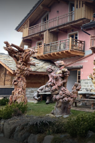 l'Hostellerie de L'Atelier, nel cui giardino sono presenti altre opere dell'artista Dorino Ouvrier, continuazione della mostra permanente e anticipazione del viaggio nel gusto della tradizione tipica valdostana del ristorante.